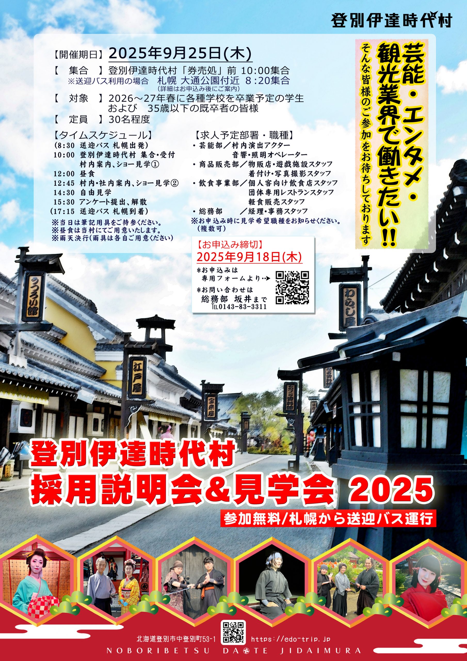 9/25(木)「登別伊達時代村 採用説明会&見学会」のご案内