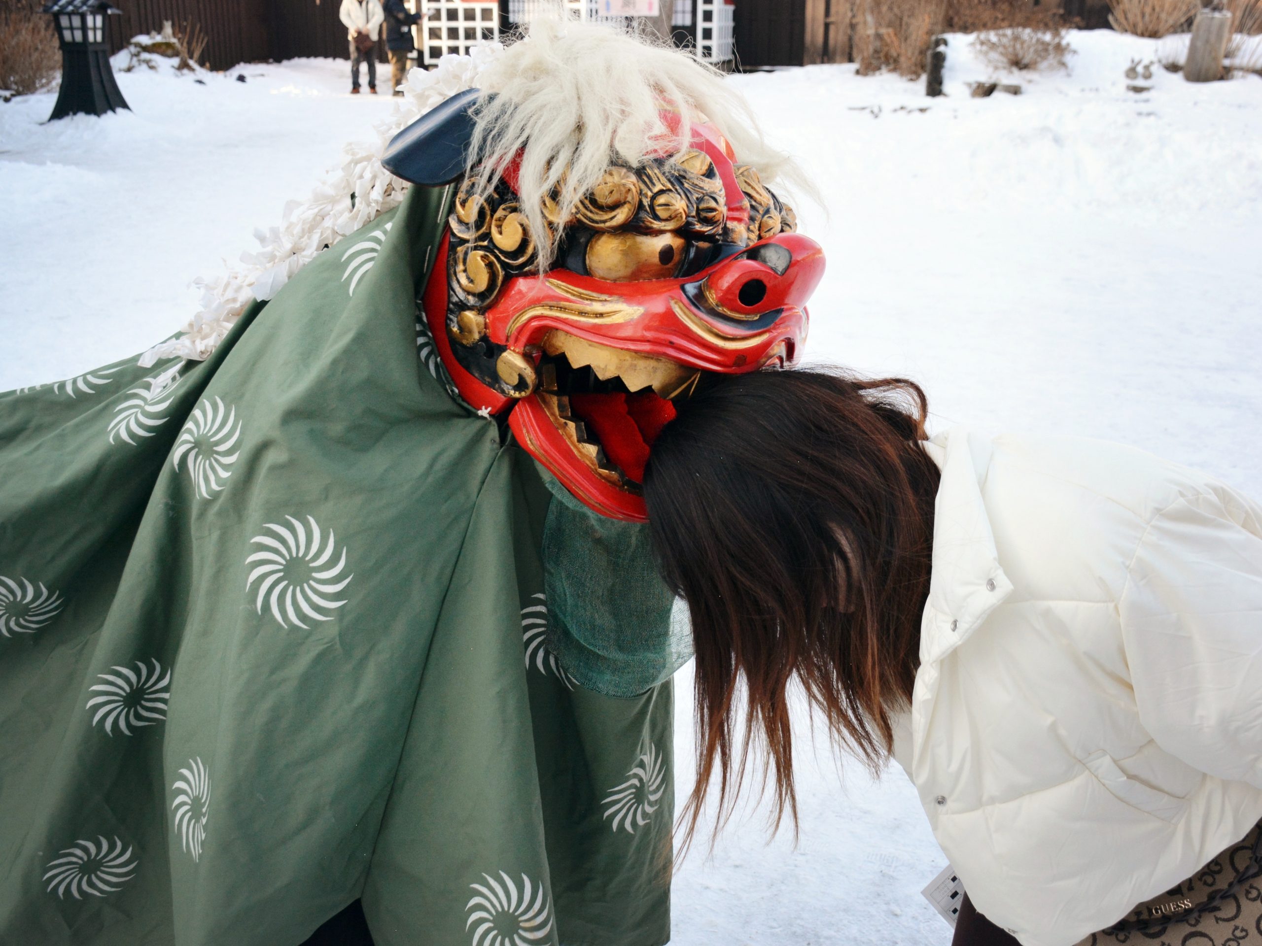 据说头被咬一口的话可以消灾解厄(并非舞龙舞狮,日本过年限定的吉祥物)。